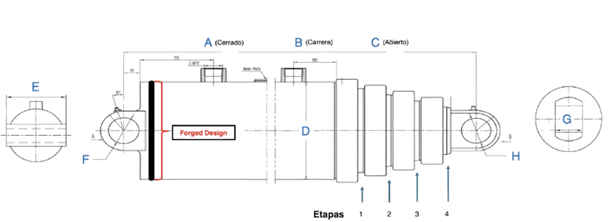 Es un cilindro hidráulico diseñado para generar movimiento de elevación lineal extendiendo múltiples secciones (etapas). Funciona con presión en un solo sentido, y se retrae por gravedad o peso. Es la mejor opción para volteo de carga en camiones y remolques.